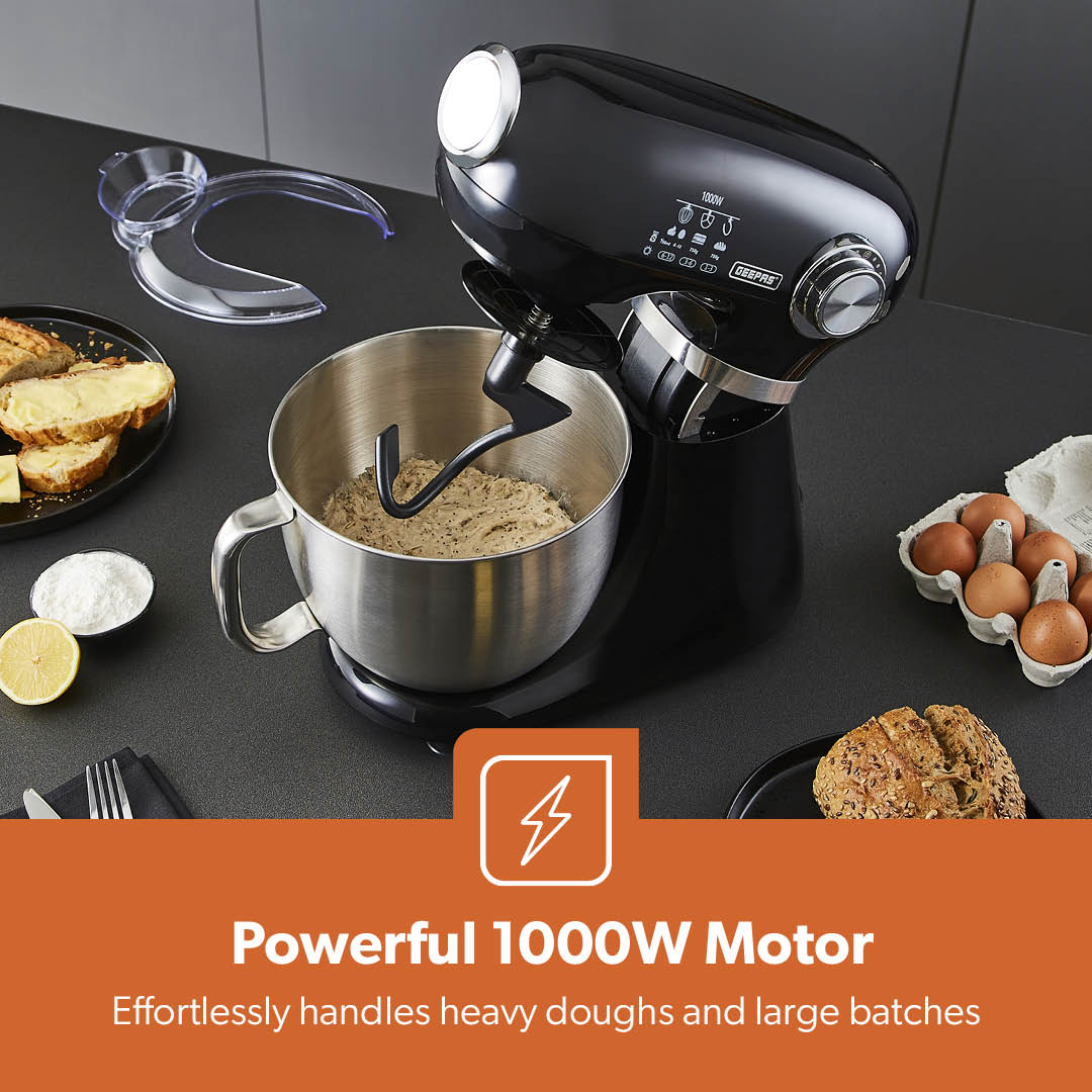 With a high-performance 1000W motor, this stand mixer ensures smooth blending, perfect for cakes, cookies, bread dough, pizza dough, and more.