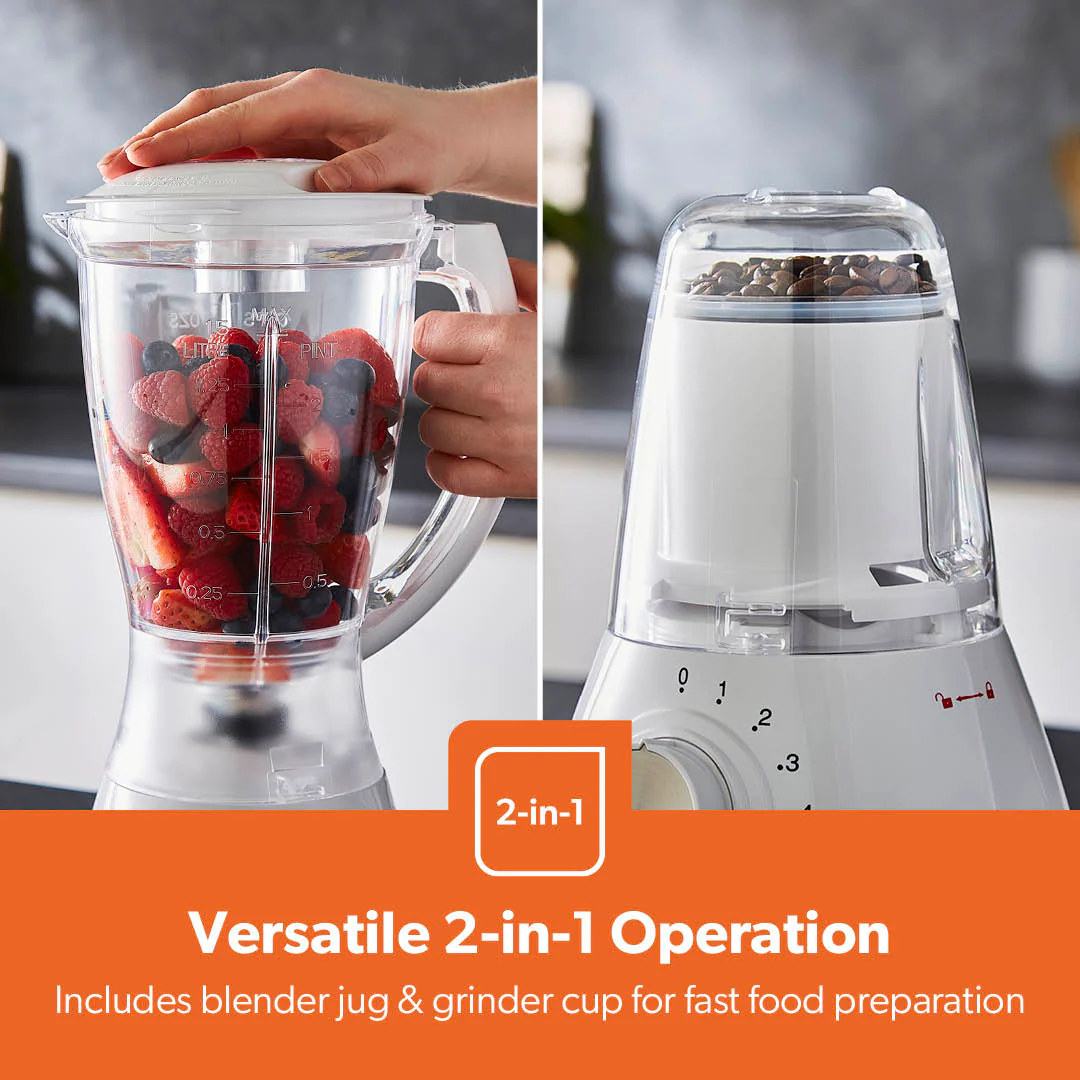 2-In-1 Portable Food Jug Blender & Grinder 1.5L, White