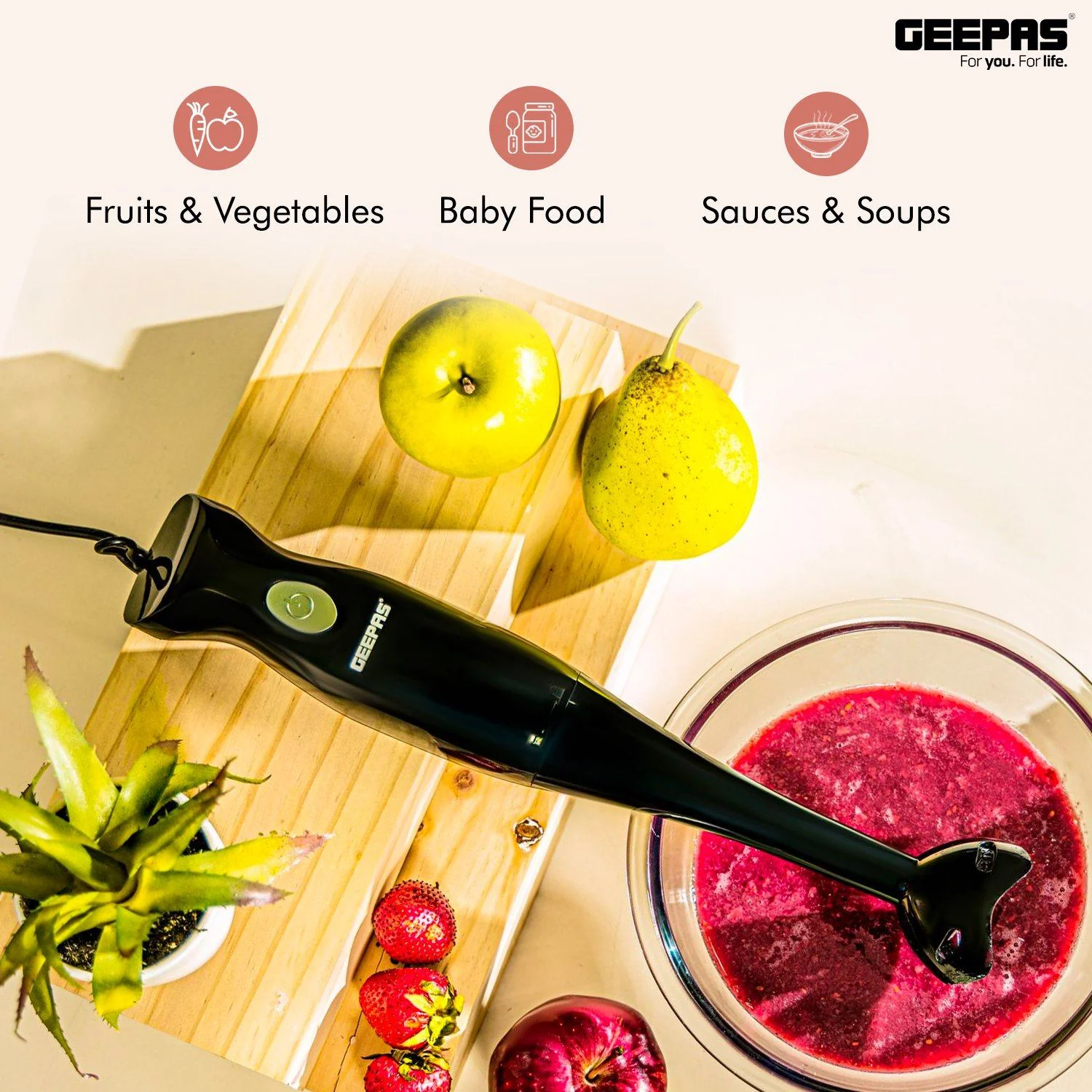 Geepas 200W Hand Blender, Food Collection Hand Blender, Soup Mixer with Stainless Steel Blades - Ideal for Smoothies Shakes Baby Food Soup Grinding Ingredients Vegetables & Fruits