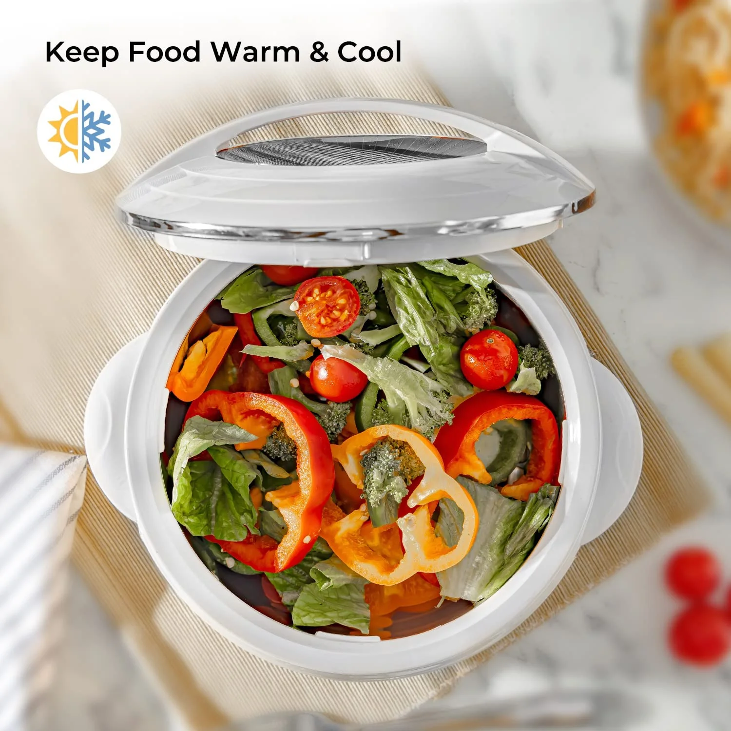 - HASSLE FREE & HYGIENIC - With this hot pot you can serve both warm and cool meals in style while also keeping them at the right temperature. Made from food grade safe thermal plastic and stainless-steel inner creating a robust casserole. Ideal for holiday, parties, dinner, pot-lucks, picnics will maintain your crunchy salads, fresh fruit salads, onion soup, pasta or any menu to that perfect temperature for your guests, friends or family.